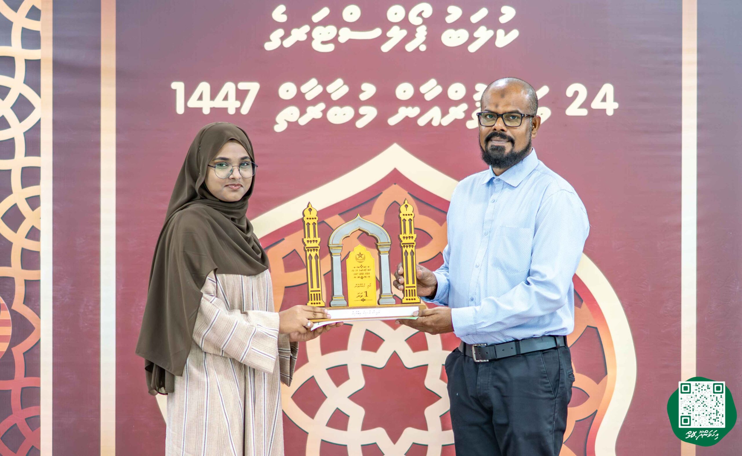 މިމުބާރާތުގެ އިނާމު ދިނުމުގެ ޖަލްސާ ޝަރަފްވެރިކޮށްދެއްވީ އިހަވަންދޫ ސްކޫލްގެ ޑެޕިއުޓީ ޕްރިންސިޕަލް މުހައްމަދު އަބުދުއް ސަމަދުއެވެ.