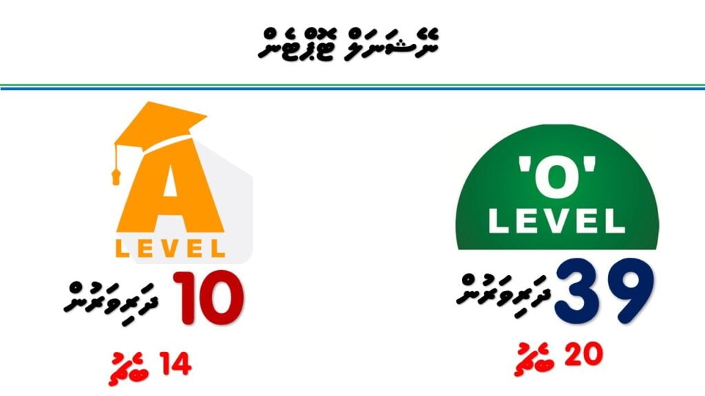 2004 ވަނަ އަހަރުން ފެށިގެން މި ސްކޫލުގައި އޭލެވެލްއަށް ދަނީ ކިޔަވައިދެމުންނެވެ. މިހައިތަނަށް 14 ބެޗުން ޖުމުލަ 270 ދަރިވަރުން ވަނީ އޭލެވެލް ފުރިހަމަކޮށްފައިވެއެވެ. މި ސްކޫލުން އޭލެވެލް ނިންމާ ދަރިވަރުންގެ ތެރެއިން 2008 ވަނަ އަހަރުން ފެށިގެން 2018ވަނަ އަހަރާ ހަމައަށް ކޮންމެ އަހަރަކު ވެސް މަތީ ސާނަވީ ސްކޫލު ނިންމާ އިމްތިހާނުތަކުން ދިވެހިރާއްޖޭގެ ގަދަ 10ގެ އެކި ވަނަތައް ދަރިވަރުން ހޯދާފައިވެއެވެ. މިގޮތުން، ގަދަ 10ގެ އެއްވަނަ އިން ފެށިގެން ދިހަވަނައާ ހަމައަށް އެކި ވަނަތަކުގައި މިހާތަނަށް 6 ދަރިވަރުން ހިމެނިފައިވާ އިރު، 2017 ވަނަ އަހަރުގެ މޭ މަހު ބޭއްވި މަތީ ސާނަވީ އިމްތިހާނުގެ ދިވެހި މާއްދާއިން މުޅި ރާއްޖެއިން އެއްވަނަ މި ސްކޫލުގެ ދަރިވަރަކު ހޯދާފައިވާކަން އުފަލާއެކު ފާހަގަކުރެވެއެވެ.